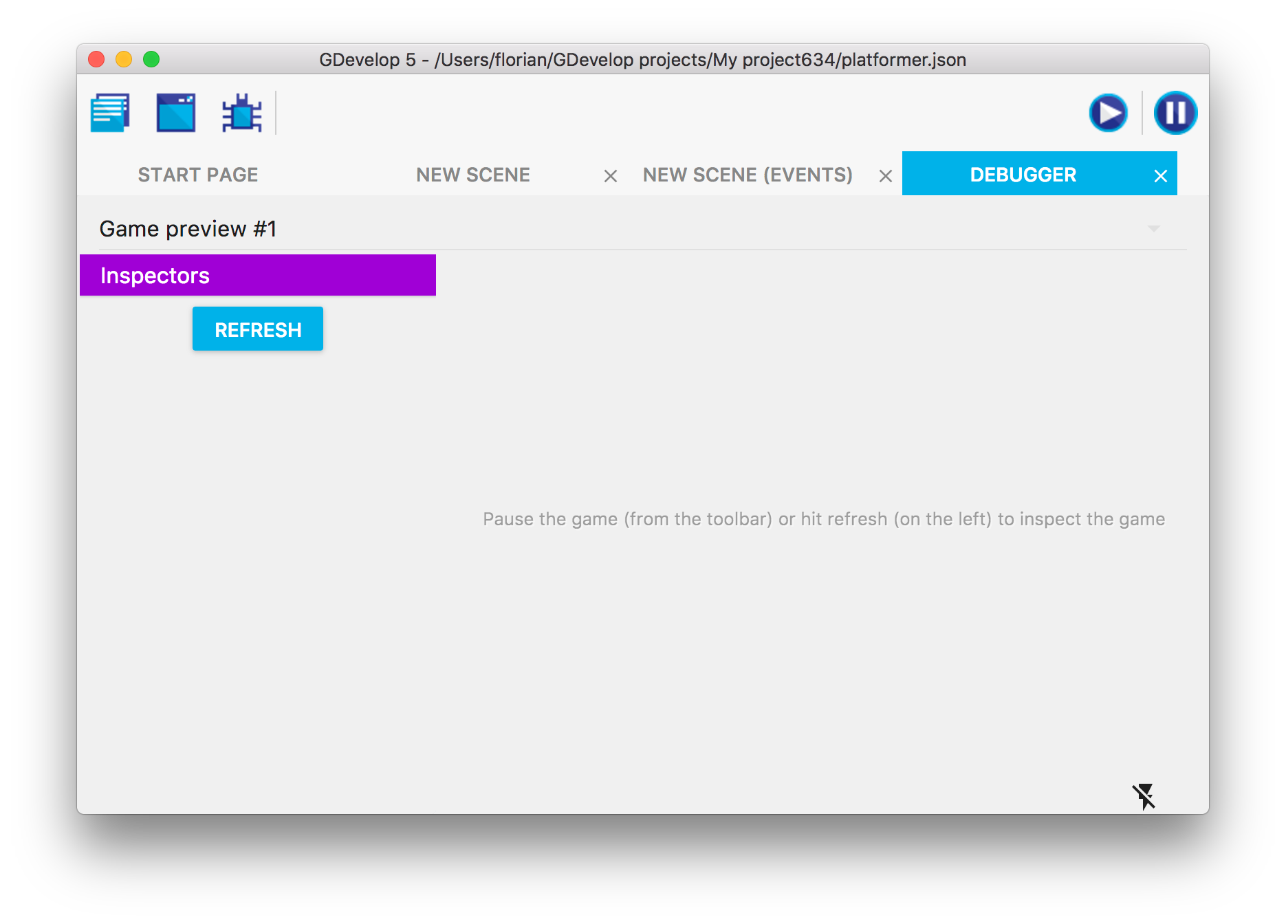 メニューで、「デバッガとパフォーマンスプロファイラーでプレビュー」を選択します。これにより、「デバッガ」という新しいタブが開き、通常どおりゲームのプレビューが起動します。